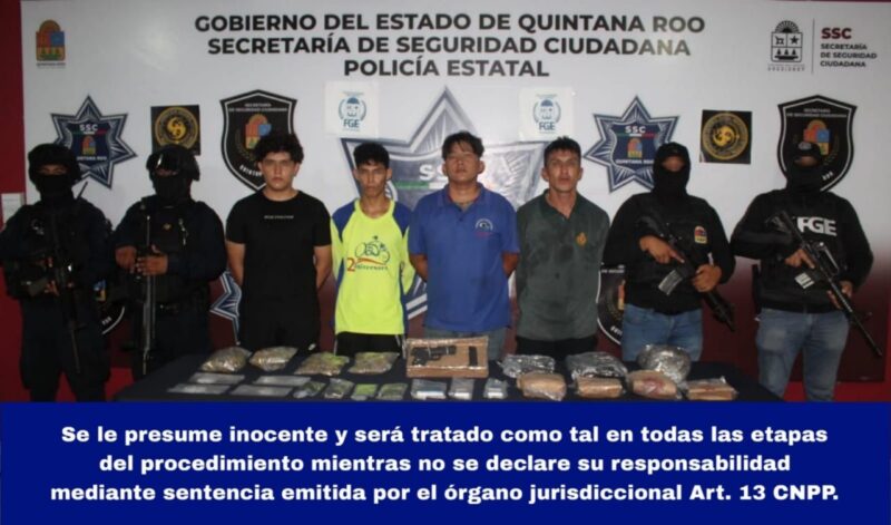 Cancún.- Luego de la detención de cuatro hombres ocurrida hace dos días en el fraccionamiento Aloja, elementos policíacos realizaron un cateo en un domicilio de esta zona, donde se cree que estos sujetos habrían descuartizado a dos personas.