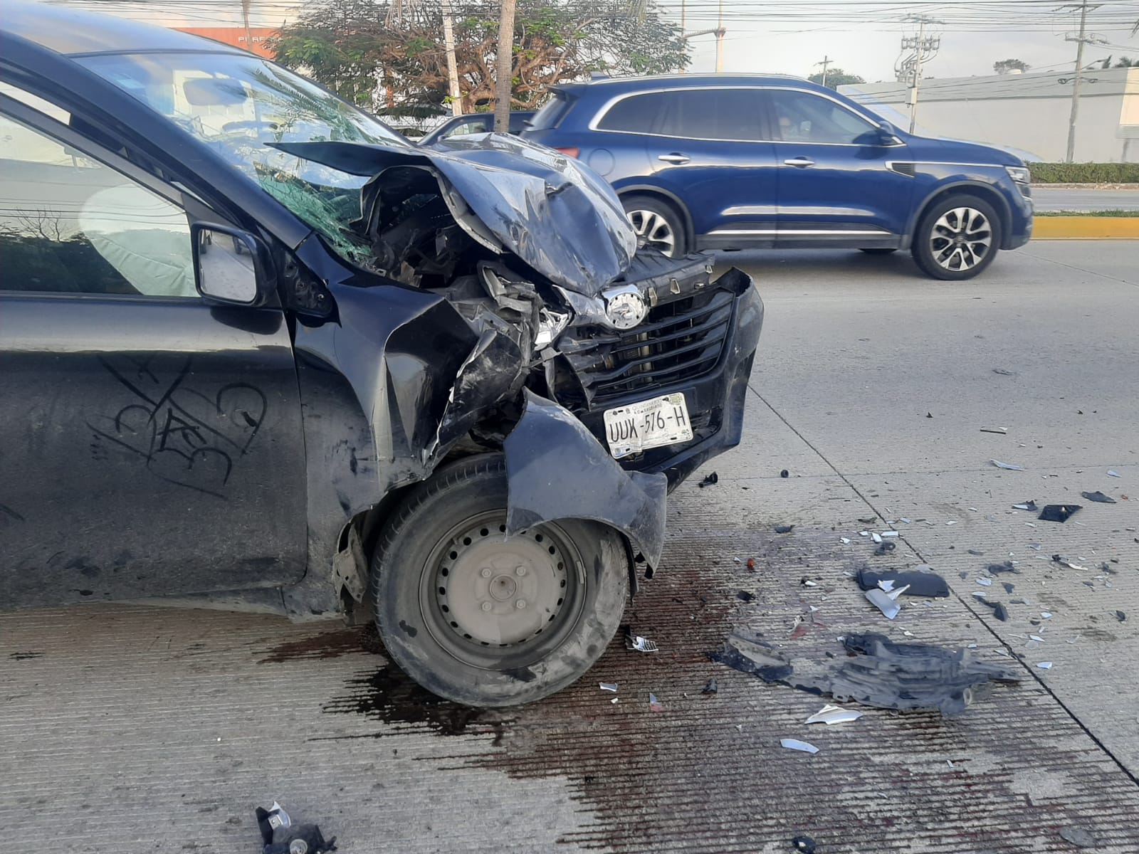 Cancún.- Esta mañana, un automovilista chocó con una camioneta de transporte de pasajeros cuando circulaban sobre el bulevar Luis Donaldo Colosio, frente a la agencia Mercedes Benz.
