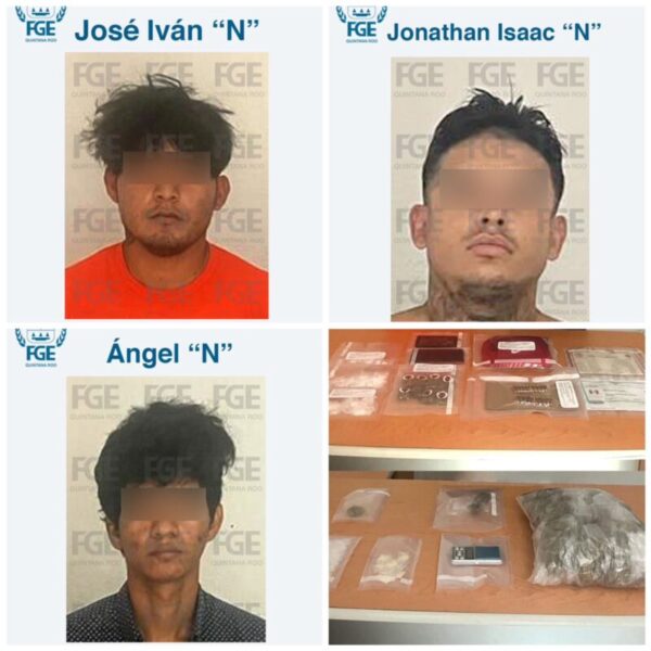 Benito Juárez.- Por su presunta participación en delitos contra la salud en su modalidad de narcomenudeo, la Fiscalía General del Estado informa que detuvo en flagrancia, en dos acciones distintas, a tres sujetos que pertenecen a una organización criminal.