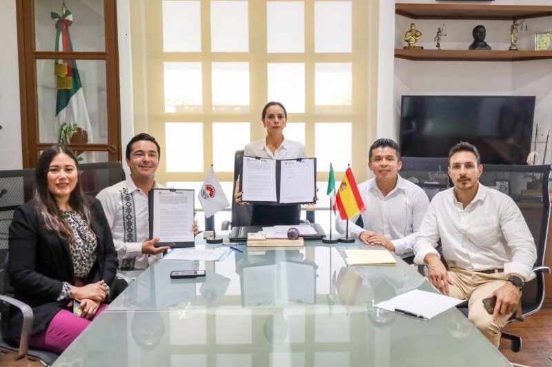 Cancún, Q. R., a 26 de septiembre de 2023.- A fin de seguir promoviendo la oferta educativa para las y los cancunenses, la Presidenta Municipal, Ana Paty Peralta, signó el Convenio de Colaboración Institucional con el Instituto Superior de Derecho y Economía (ISDE), adscrito a la Universidad Complutense de Madrid, España, para facilitar el acceso a sus programas de maestría en modalidad mixta y de becas.