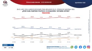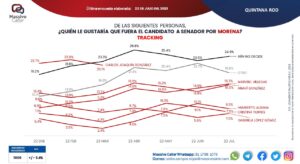 Cancún.- Esta mañana, a través de redes sociales, la empresa encuestadora “Massive Caller” dio a conocer su medición de la intención de voto para senadores de Quintana Roo, en la cual Morena mantiene su ventaja en esta materia, al contar con un 47.8 por ciento, seguido del 25.7 por ciento de la coalición PAN-PRI-PRD.