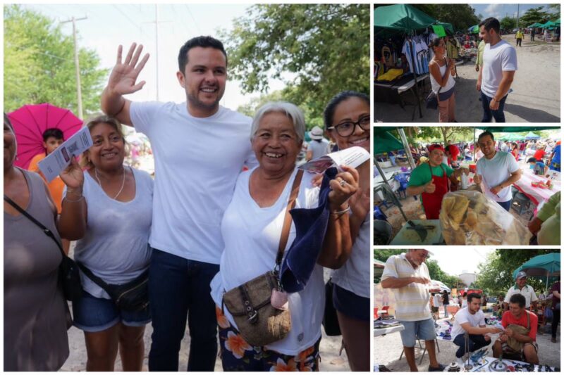 Cancún, 18 agosto 2023.– Cancunenses destacaron el trabajo en la calle y la cercanía que mantiene el secretario Pablo Bustamante, quien hoy visitó a tianguistas de la Región 96, para seguir llevando la información de los Programas del Bienestar que se entregan sin intermediarios y de manera gratuita como se ha establecido en el gobierno de Mara Lezama.