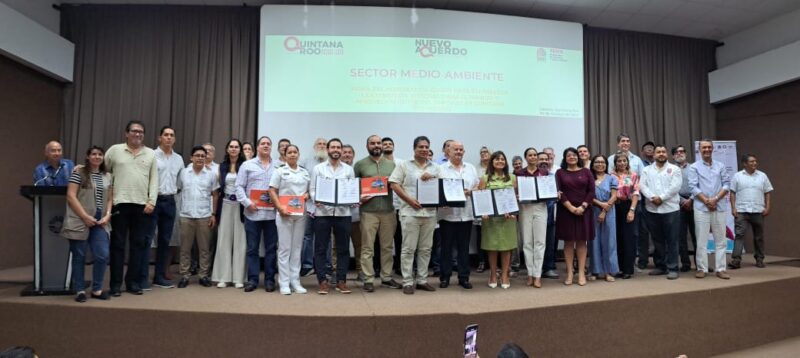 Así mismo, se firmó el Acuerdo Solidario para implementar la Estrategia Integral para el Manejo y Aprovechamiento del Sargazo en Quintana Roo (EIMAS), derivado del Nuevo Acuerdo por el Bienestar y Desarrollo de Quintana Roo que impulsa la gobernadora Mara Lezama Espinosa y que formalizará la participación permanente de los integrantes de la Mesa de Trabajo y diversos actores, así como la coordinación con el Gobierno del Estado y las distintas dependencias involucradas con el tema.