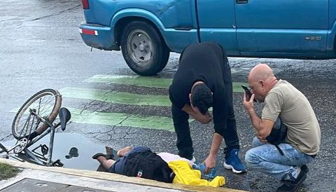 Testigos oculares refirieron que el hombre venía transitando sobre la avenida Chac Mool, cuando de pronto la mitad de su bicicleta terminó incrustada en el bache inundado que tiene un metro de profundidad.