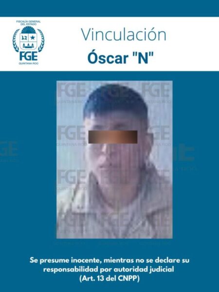 • La Fiscalía General del Estado informa que Óscar “N” es señalado por su probable participación en el delito de extorsión a establecimientos de Solidaridad; podría alcanzar hasta 37 años de prisión