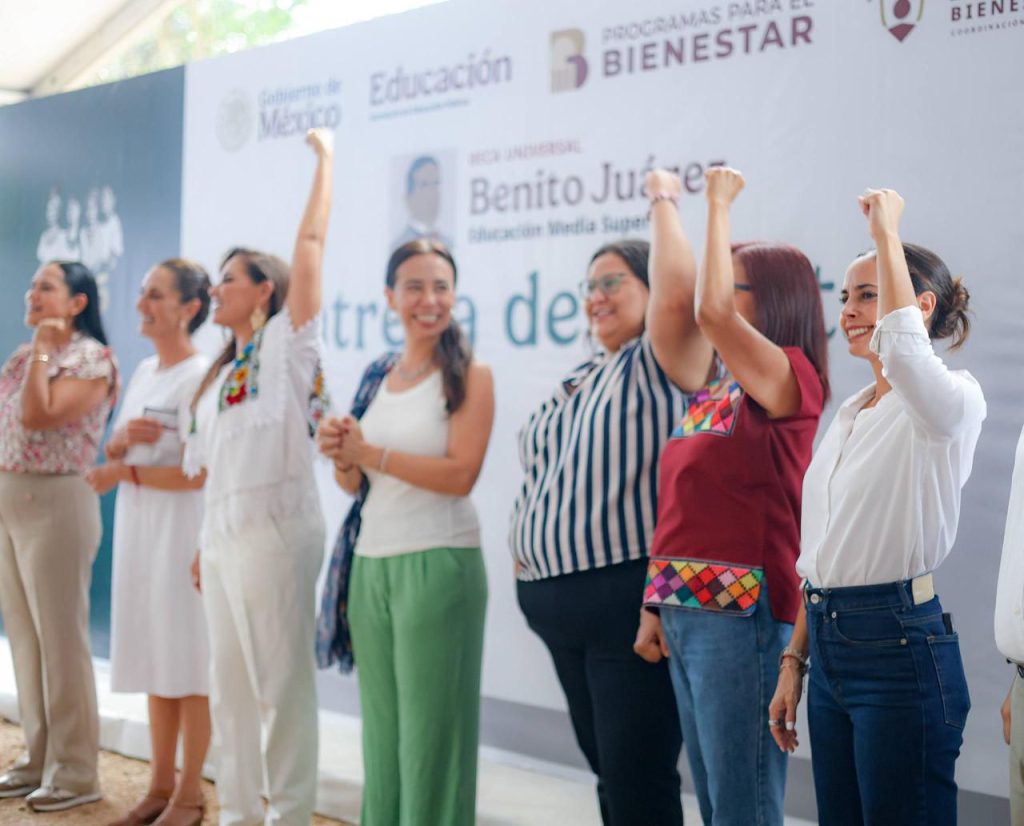 · De manos de la Presidenta de México, Claudia Sheinbaum Pardo, estudiantes cancunenses reciben las primeras tarjetas en la Entidad