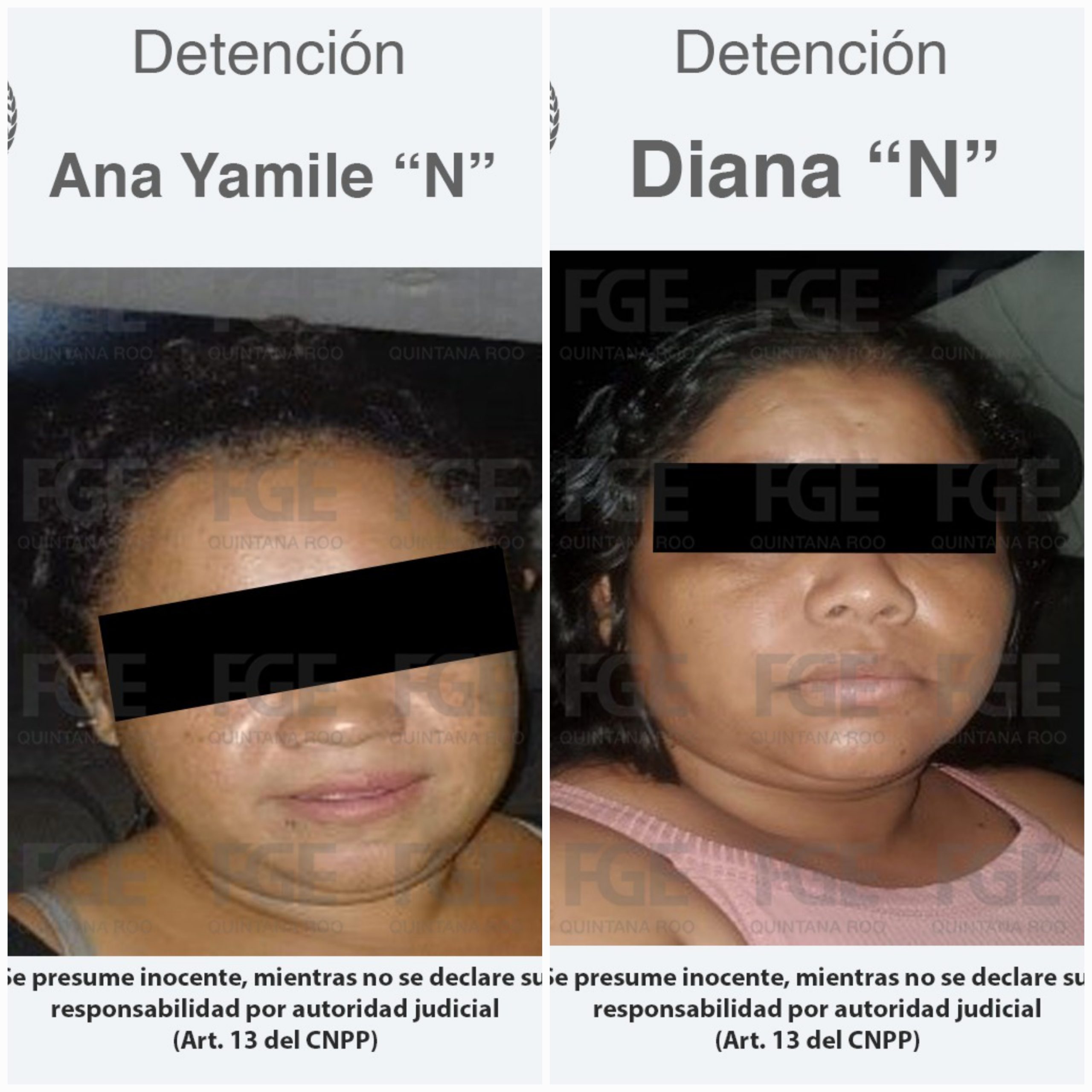 • La Fiscalía General del Estado da a conocer que las detenidas son Diana “N” y Ana Yamile “N”