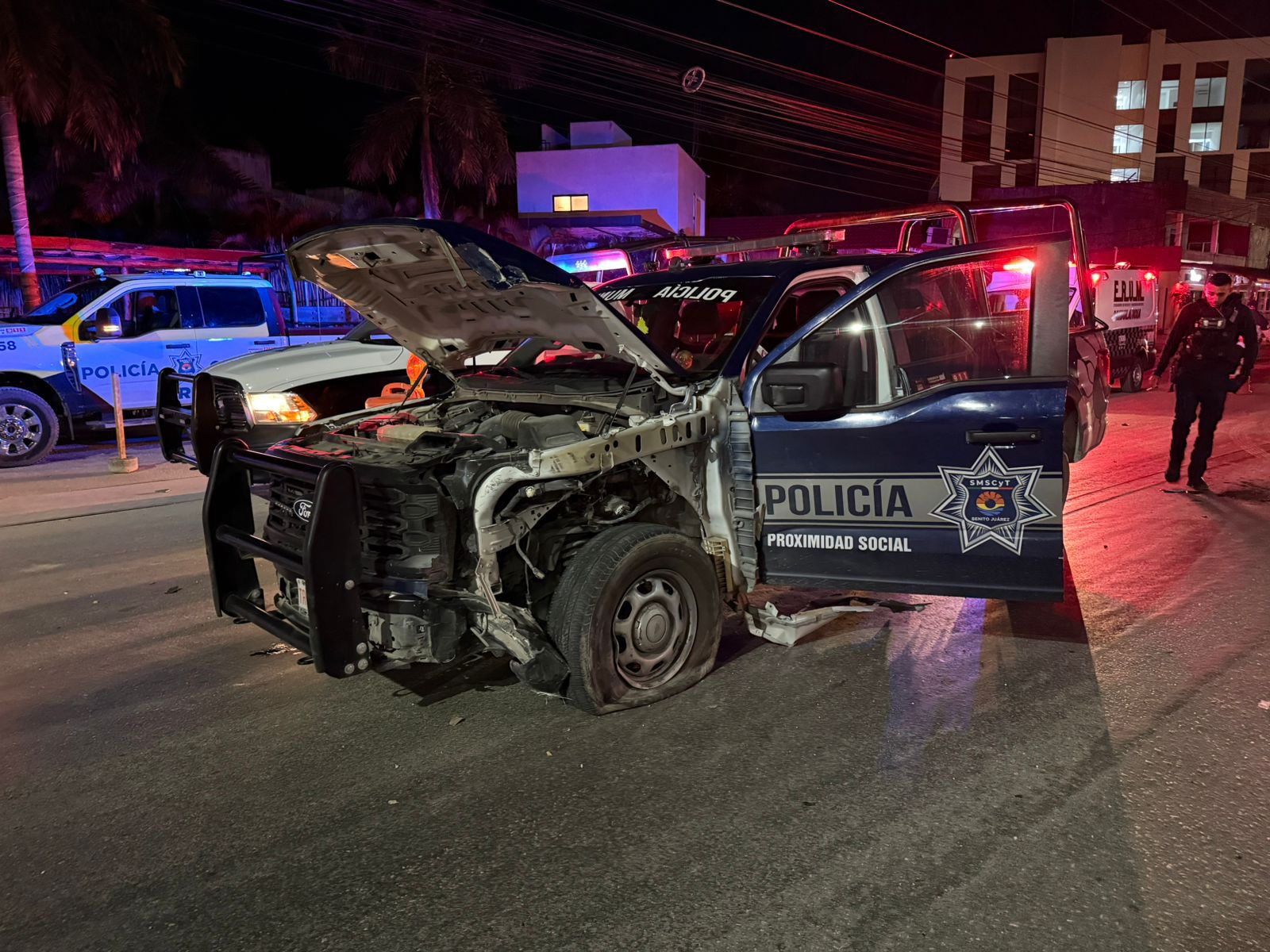 Los hechos ocurrieron alrededor de la 1:30 de la mañana, a la altura de la Supermanzana 311, cuando el conductor de una camioneta realizó un cambio repentino de carril. La acción habría invadido la trayectoria de una patrulla que circulaba por la vialidad, lo que derivó en un impacto lateral entre ambas unidades.