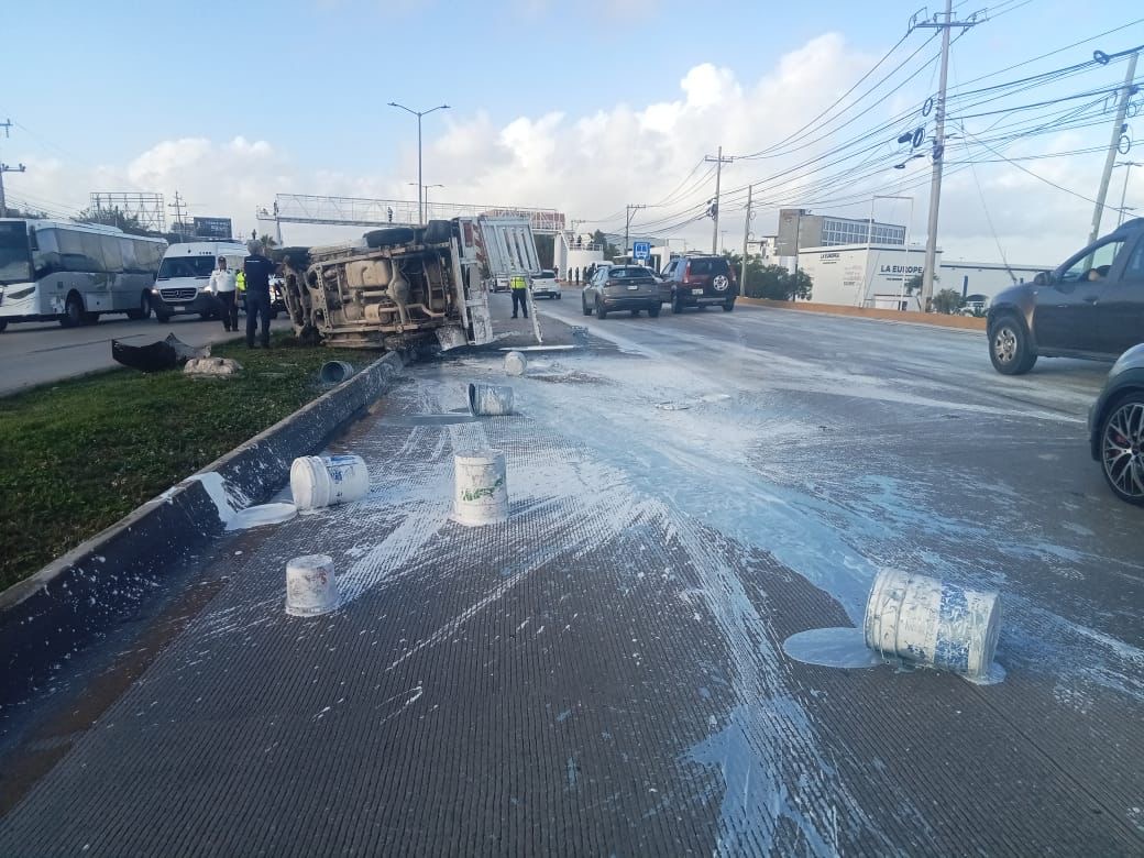 Choque múltiple en el Bulevar Colosio de Cancún deja dos lesionados
