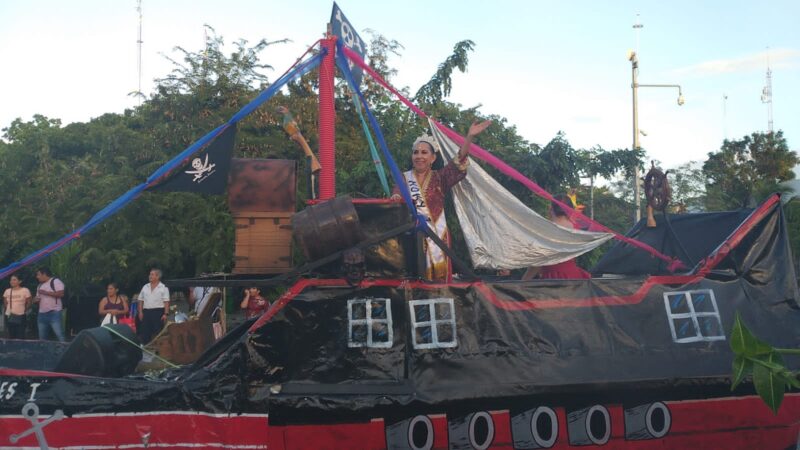 La presidente municipal, Ana Paty Peralta de la Peña, abordó uno de los carros alegóricos, cerca de la Uxmal y saludó a los presentes desde arriba.