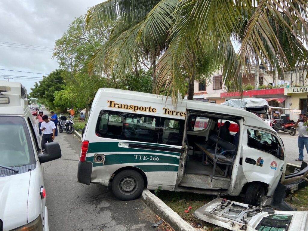 Cancún.- Por ir a exceso de velocidad el conductor de una combi de transporte público, de la ruta R-21, chocó esta tarde contra una van estacionada, lo que dejó como saldo seis personas lesionadas, en la Región 221 de esta ciudad.