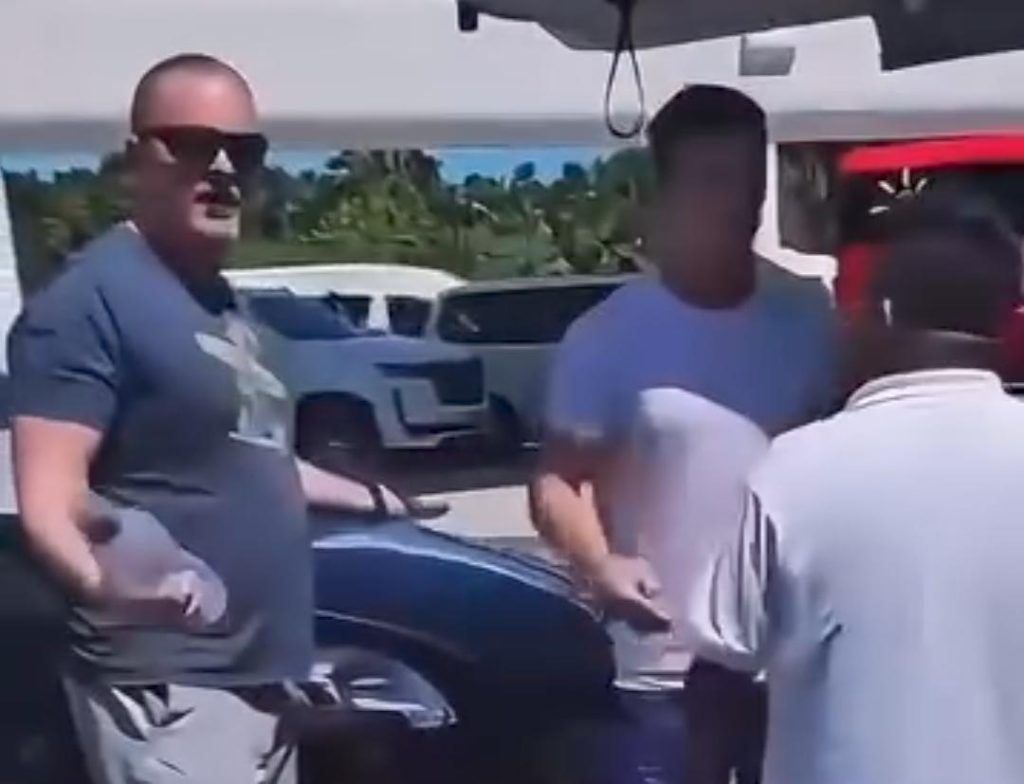 En las imágenes captadas se logra observar al turista aproximándose de manera provocativa al hombre, quien intenta evitar el contacto, pero la situación escala rápidamente a los empujones.