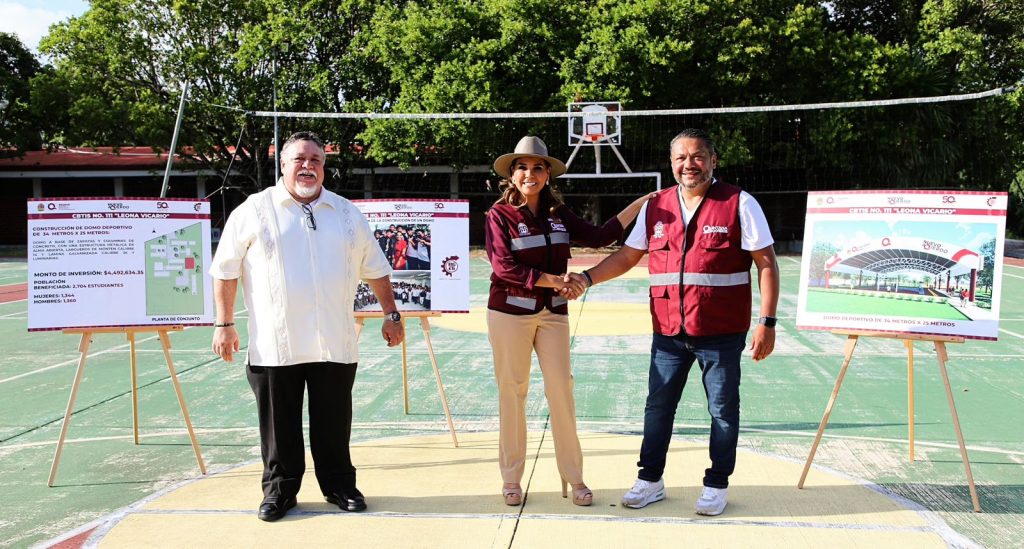 Cancún.- La gobernadora Mara Lezama Espinosa anunció la construcción de un domo deportivo, con inversión superior a los 4 millones 490 mil pesos, en el Centro de Bachillerato Tecnológico Industrial y de Servicios (CBTIS) 111 “Leona Vicario”, para responderle a 2 mil 704 estudiantes.