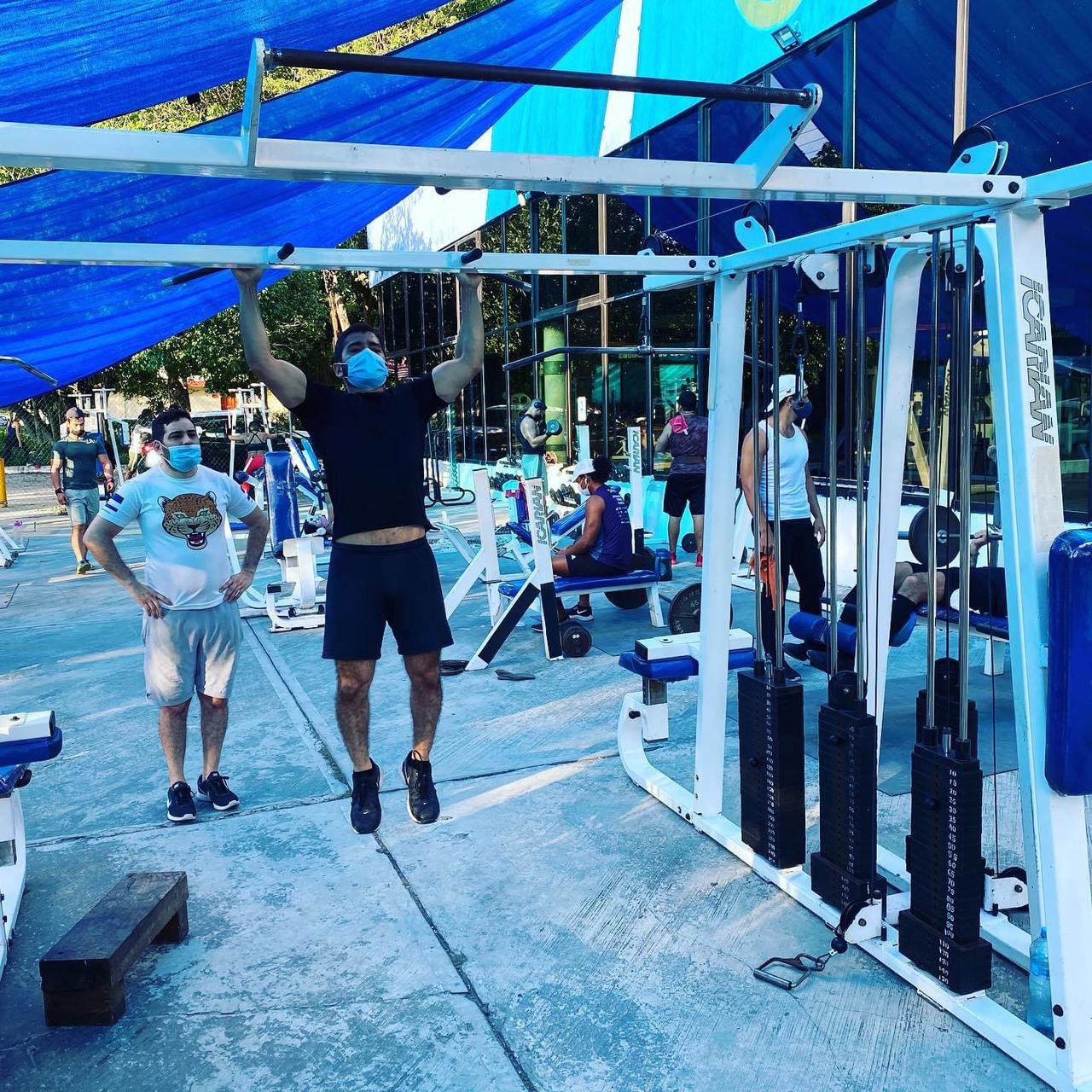 Se trata del Golden’s Gym, que se localiza sobre la avenida Ixcun, en la Supermanzana 33, donde fue habilitada una zona al aire libre para los aparatos y máquinas para hacer ejercicio, respetando la sana distancia.