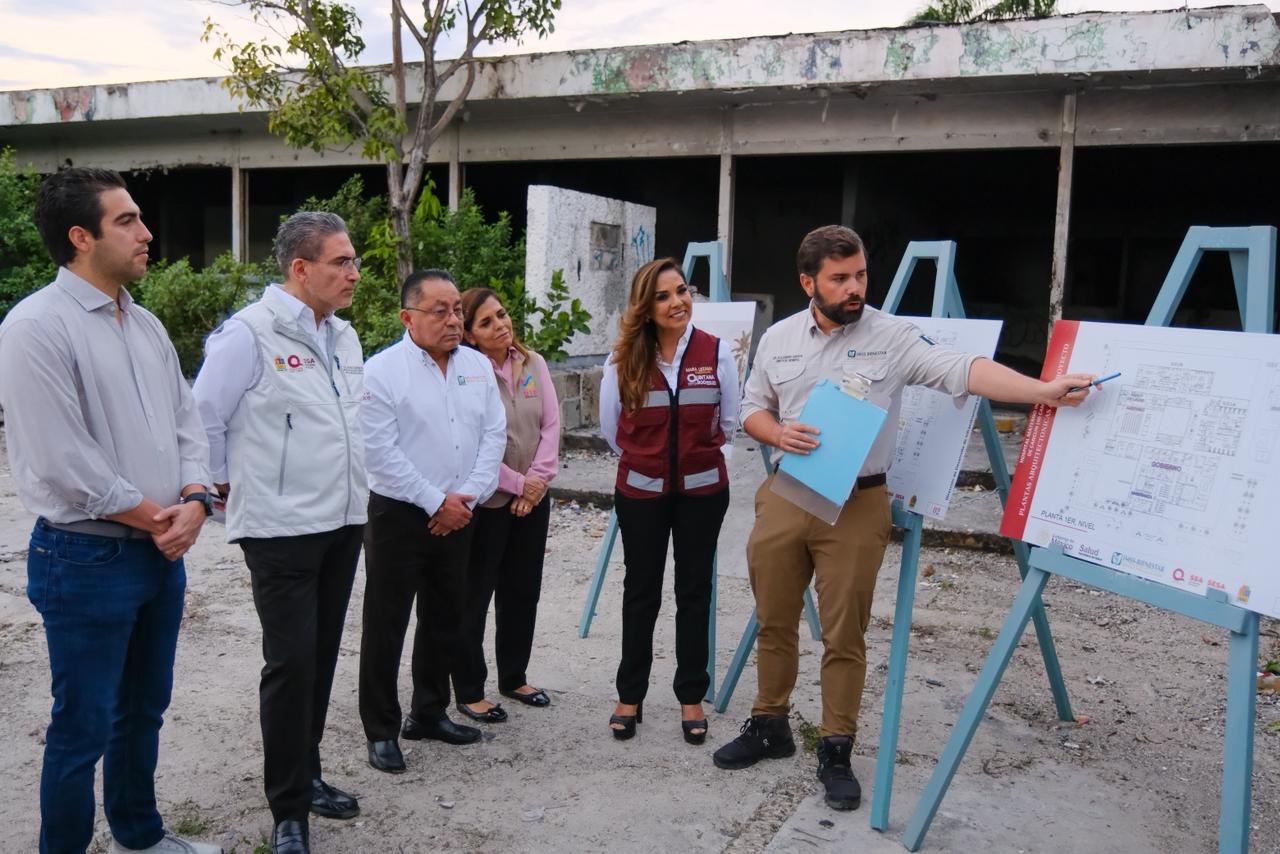 Mara Lezama dio la bienvenida al director general de IMSS-BIENESTAR, Alejandro Svarch, a quien presentó el proyecto que dará nueva vida al inmueble inaugurado en 1980 y que dejó de operar en 2017, tras la apertura del nuevo Hospital General, quedando desde entonces en el abandono.