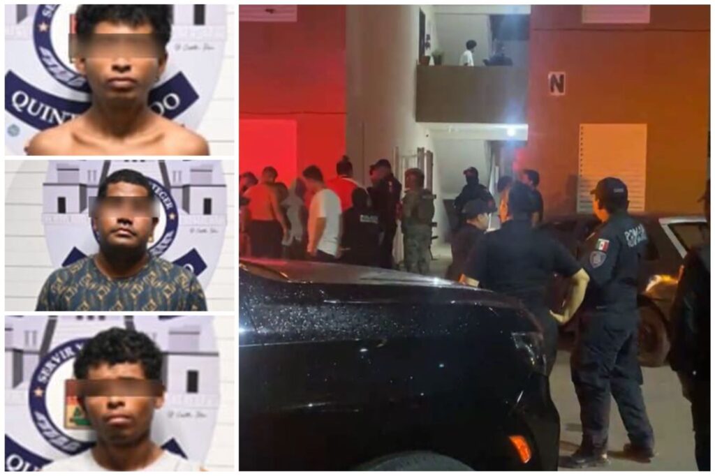 Cancún.- Agentes de la Policía Municipal detuvieron esta madrugada a tres hombres en el fraccionamiento Prado Norte, que se creen son los responsables del ataque armado en este fraccionamiento, mismo que dejó a tres sujetos lesionados.