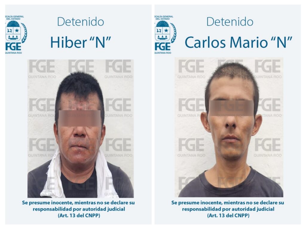 • Hiber “N” y Carlos Mario “N” fueron detenidos por agentes de Investigación de la FGE Quintana Roo en estrecha coordinación con policías municipales de Tulum