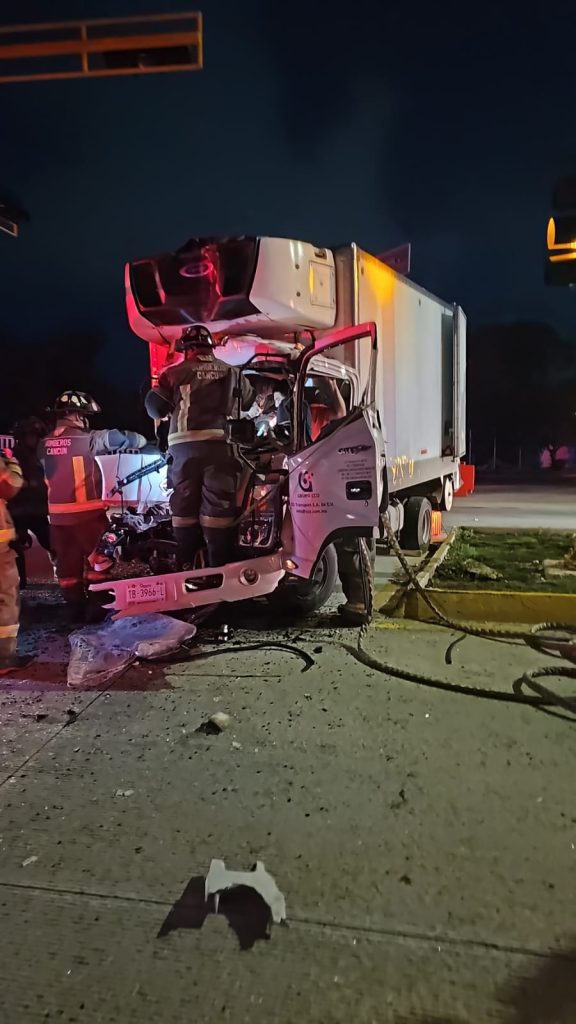 Cancún.- Un autobús de la empresa ODA y un camión de carga se impactaron la madrugada de este lunes en el Bulevar Luis Donaldo Colosio, dejando como saldo nueve personas lesionadas, incluido al conductor del último vehículo.