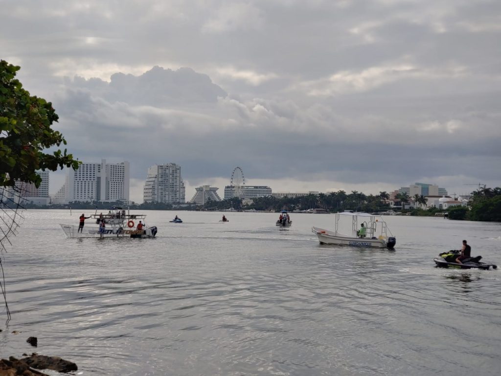 Cerca de las 6 de la tarde del sábado se reportó al número de emergencia al 911 el hundimiento de una embarcación privada en la laguna Nichupté, con ella, la desaparición de al menos cuatro personas.