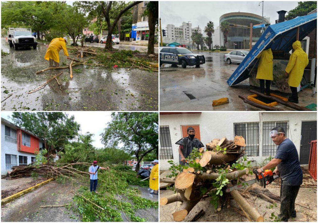 Por su parte, Juan José Farías, director de parques y áreas jardinadas del Ayuntamiento, entrevistado desde la Supermanzana 51, en donde ya cortaban un árbol, mencionó que entre ayer y hoy atendieron 14 reportes por árboles caídos, a los que se sumaron otros siete que ellos se toparon en sus recorridos, en diversos puntos de la ciudad.