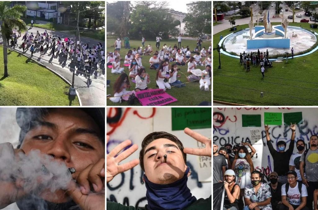Primero unos 25 jóvenes realizaron una protesta pacífica fumando mariguana en la glorieta del Ceviche, porque consideran que la despenalización de la hierba es muy limitada.