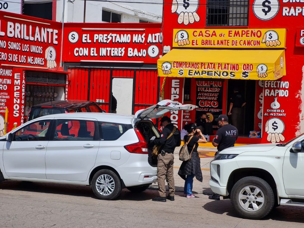 Cancún.- Agentes de la Fiscalía General de la República (FGR) encabezaron un cateo a una casa de empeño ubicada frente al Mercado 28, sin que se sepa el motivo del mismo.