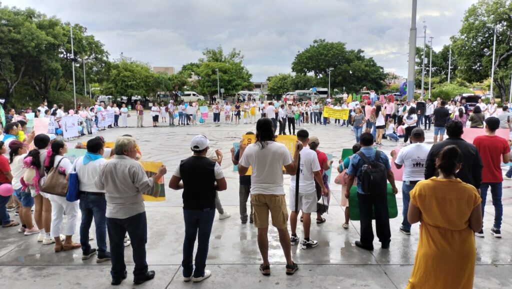 Cancún.- Alrededor de 200 personas, la mayoría padre de familias e integrantes de distintas asociaciones civiles, se manifestaron esta tarde en la explanada del Palacio Municipal de Cancún, para expresar su preocupación sobre el contenido en los nuevos libros de texto.